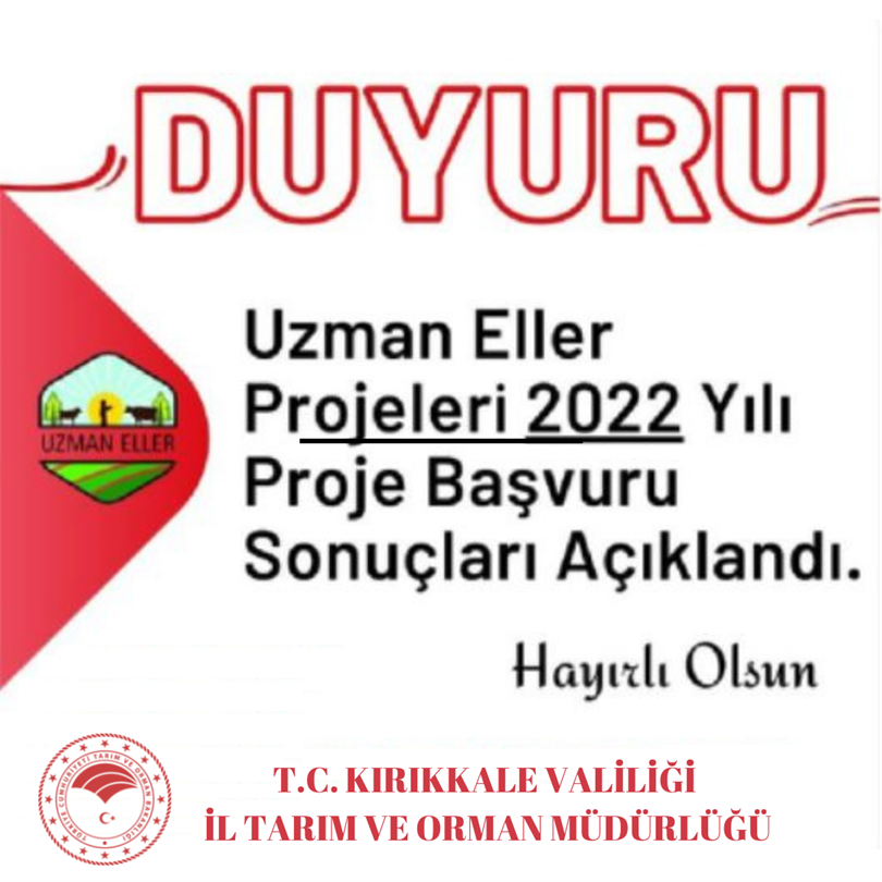 Kırsal Kalkınma Destekleri Kapsamında Kırsal Kalkınmada Uzman Eller Projelerinin Desteklenmesi Hakkında Tebliğ (Tebliğ No: 2021/61)'De Değişiklik Yapılmasına Dair Tebliğ (Tebliğ No: 2022/6) gereğince yapılan hibe başvuruları Bakanlığımızca değerlendirilerek sonuçlandırılmıştır.