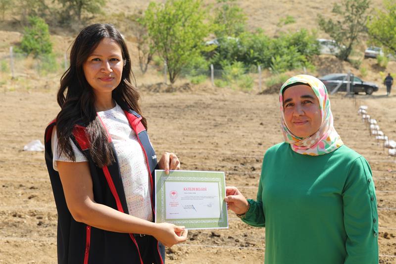 Ayrıca, 20 kadın çiftçimize safran yetiştiriciliği konusunda eğitimler verildi. Bugün düzenlenen programda eğitimlerini başarıyla tamamlayan kadın üreticilerimize sertifikaları takdim edildi. Safran soğanlarımız Safranbolu’nun Safranova bölgesinden temin edilirken, kadın üreticilerimizin üretim sürecini yerinde görmeleri amacıyla teknik bir gezi de gerçekleştirildi.